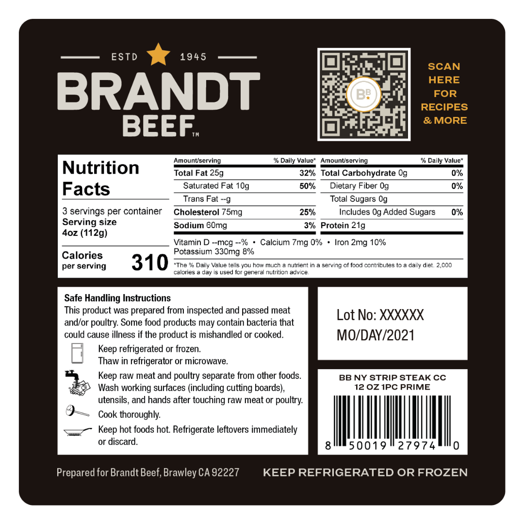 The New York Strip Steak is one of the most versatile cuts to cook. It is considered one of the top five steaks for flavor, tenderness, and mouth-feel. If you prefer to grill, a Prime NY Strip will perform excellently, as it can withstand the dry heat. Otherwise, pan sear it to form a delicious, crispy crust. Serve with a fresh green chimichurri sauce or a savory peppercorn sauce.